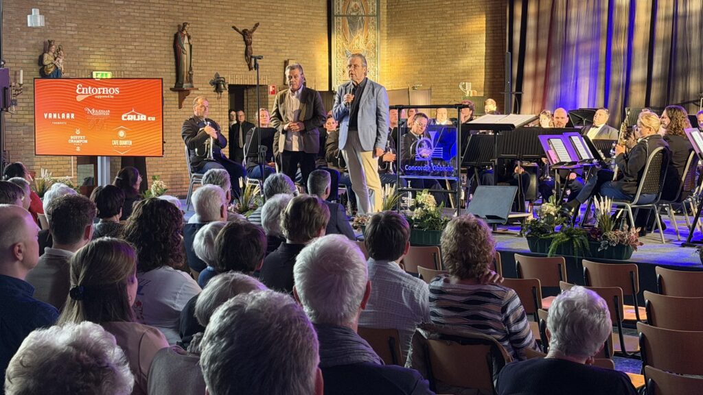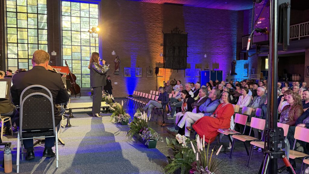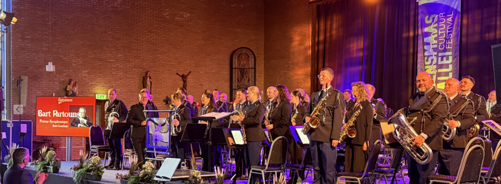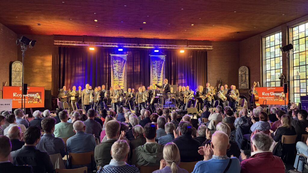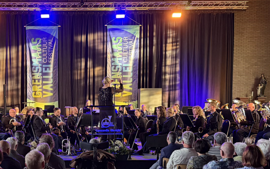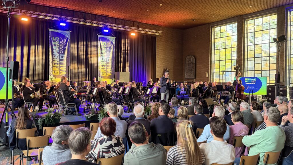 Het Grensmaas Vallei Cultureel Festival: ook bij het ‘final concert’, gisteravond, met in de kerk vier dirigenten voor het orkest van de Koninklijke marechaussee Nederland, was er weer een extra groot podium nodig. Net als een dag eerder, met de Marinierskapel der Koninklijke Marine, klonk het allemaal als een klok.